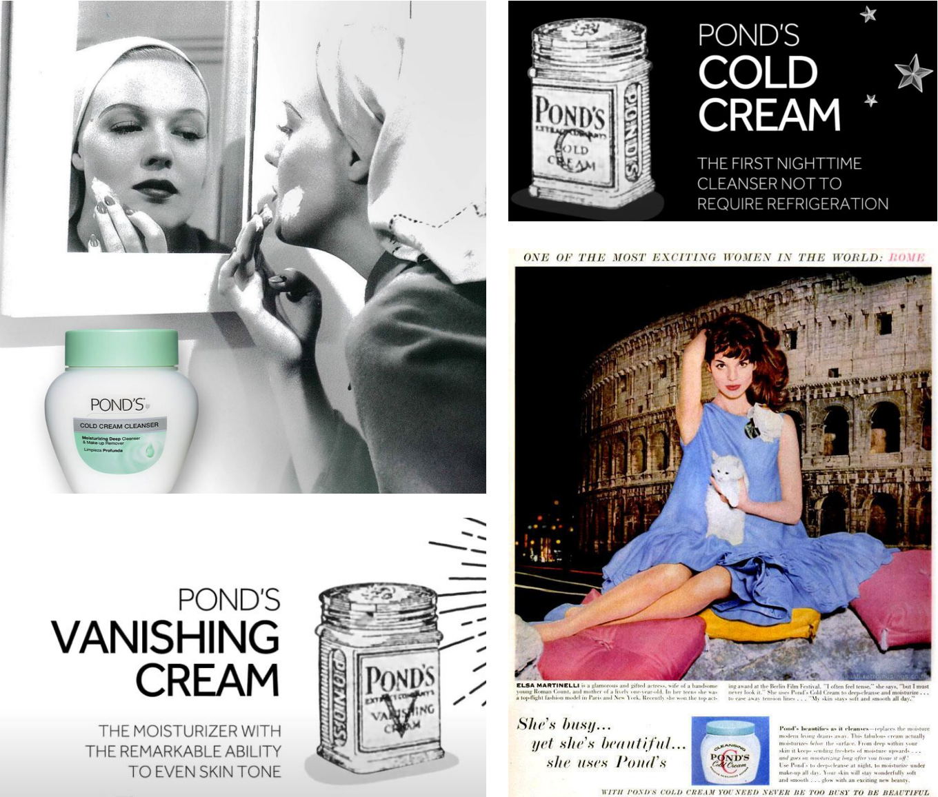 As the 20th Century advanced and World War 2 broke out, women had to step in and take over men’s jobs as they went to war. Pond’s stood by them with their unique duo of Pond’s Cold Cream (the world’s first moisturizer not to require refrigeration) and Pond’s Vanishing Cream helping them retain their grace, softness and femininity in these stressful new roles.